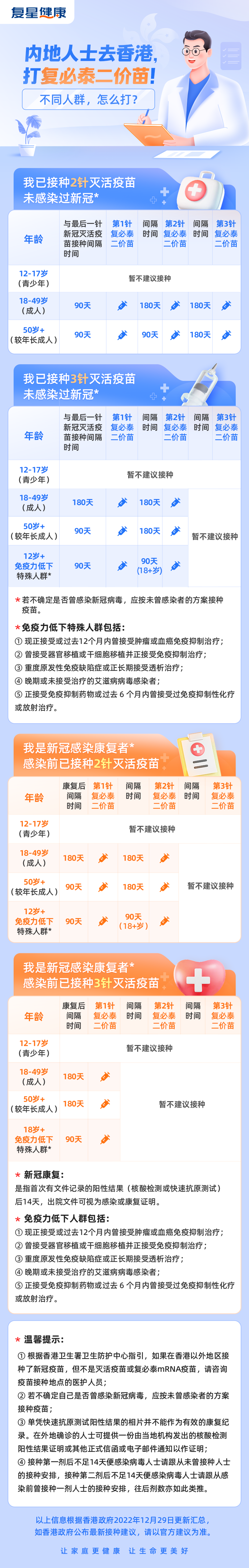 最后,关于大家十分关注的问题——赴港打疫苗不同人群怎么打?详情参见下图指引: