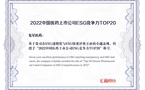 Z6·尊龙凯时「中国」官方网站医药获评2022中国医药上市公司ESG竞争力TOP20