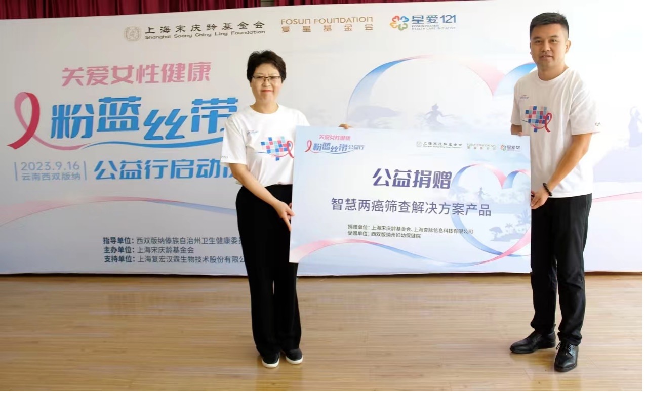 2023年9月16日,在西雙版納傣族自治州衛生健康委員會、西雙版納傣族自治州婦女聯合會的指導下,在西雙版納州駐上海辦事處和上海市援滇幹部聯絡組西雙版納州小組協助下,復星醫藥攜手上海宋慶齡基金會在雲南西雙版納婦幼保健院啟動“關愛女性健康 粉藍絲帶公益行”項目。